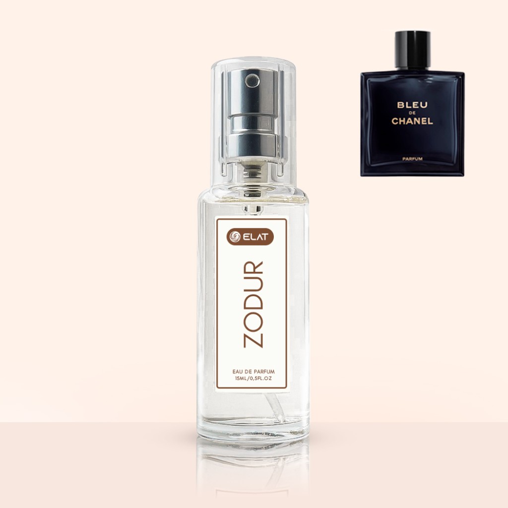 O Zodur (inspirado no Bleu de Chanel) possui um perfil amadeirado aromático, fresco e levemente cítrico, com uma presença equilibrada e sofisticada.