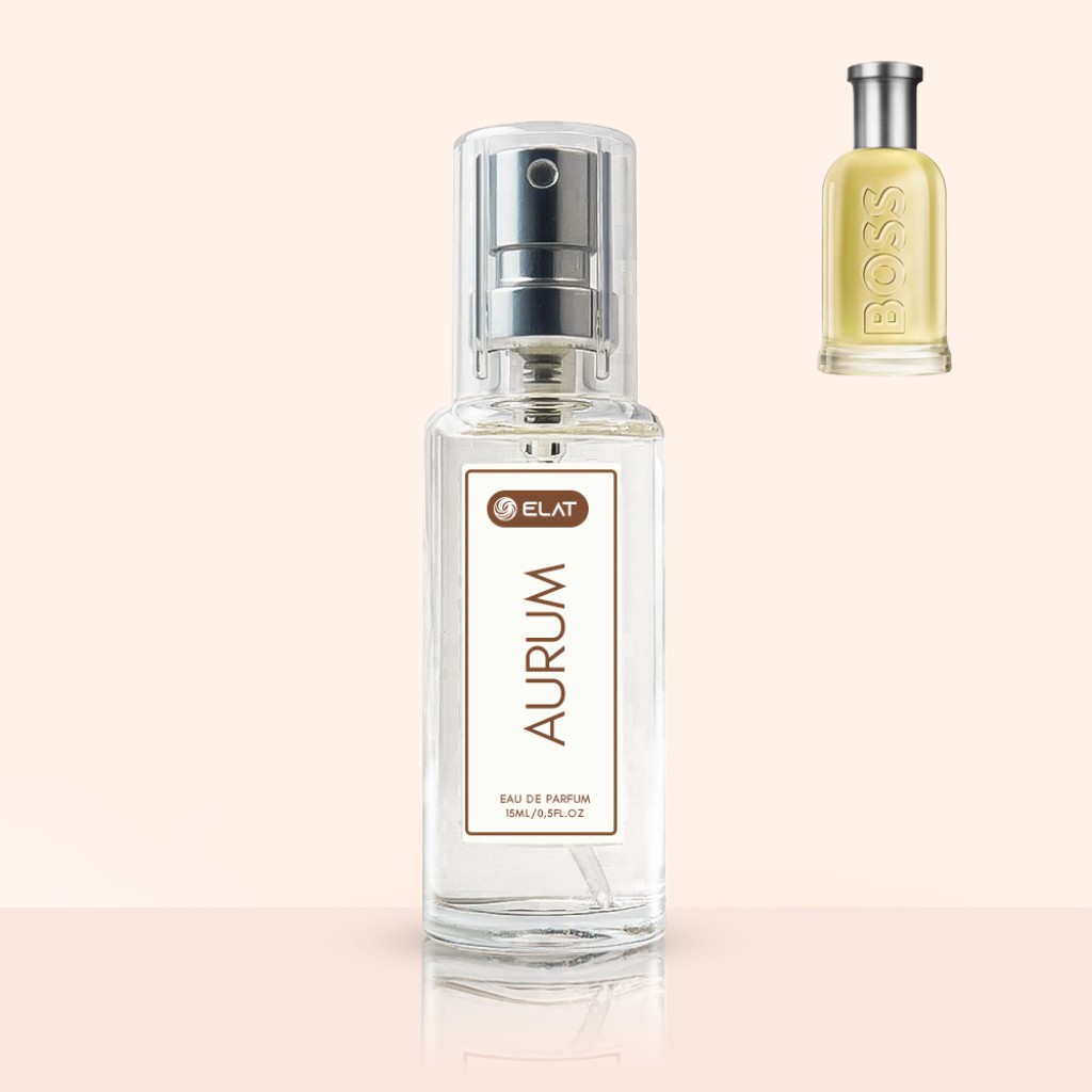 O Aurum (inspirado no Boss Bottled) traz uma fragrância amadeirada com toque adocicado, quente e envolvente, com excelente fixação.