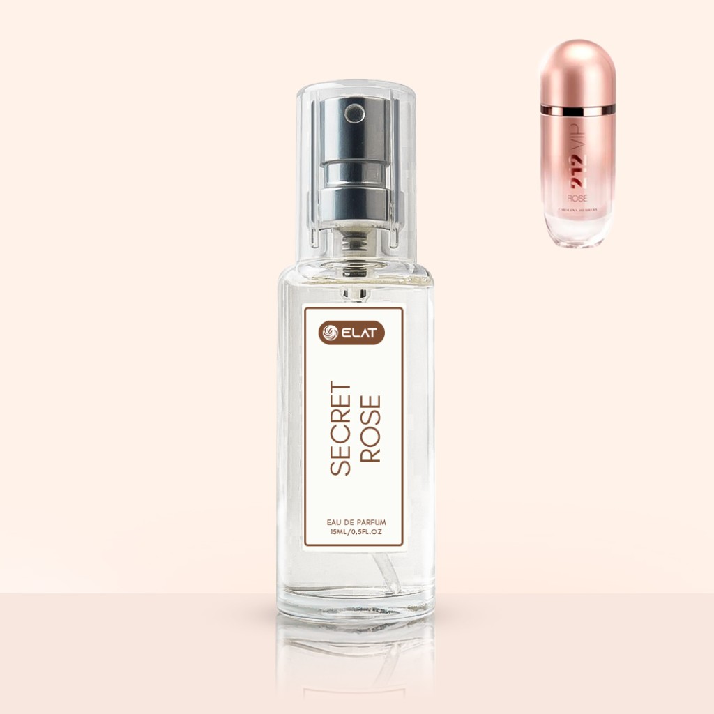 O Secret Rose (inspirado no 212 VIP Rosé) traz um perfil floral frutado, levemente adocicado e envolvente, com ótima durabilidade.