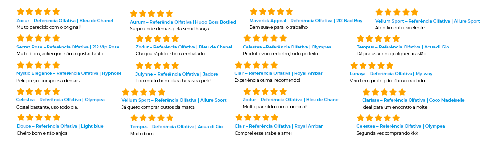Recebemos avaliações positivas de pessoas que já compraram e tiveram uma boa experiência com nossos perfumes e atendimento.